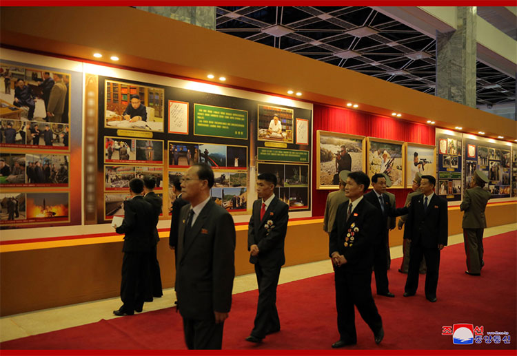 展覽會(huì )場(chǎng)上以近5年來(lái)研發(fā)生產(chǎn)的各種武器裝備、戰斗技術(shù)器材為主的朝鮮的強大國防力量集結在一起。