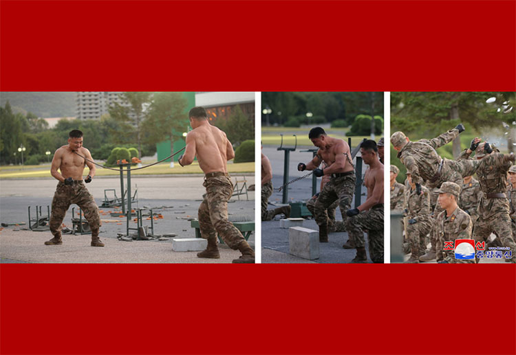 隨后,人民軍戰斗員進(jìn)行格斗威力示范表演。