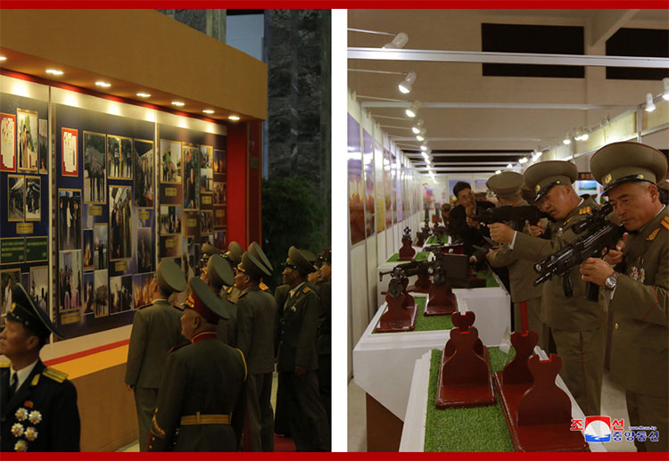 展場(chǎng)上激烈蕩漾著(zhù)對帶領(lǐng)自衛國防建設急速發(fā)展,締造能夠堅定保證我們祖國永遠無(wú)窮的安寧和未來(lái)的絕對強大力量的光榮的我們朝鮮勞動(dòng)黨的火熱感激之情。