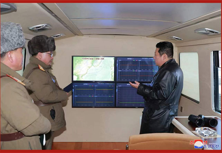 在試射之前,敬愛(ài)的金正恩同志聽(tīng)取了國防科學(xué)院院長(cháng)關(guān)于高超音速導彈武器系統的綜合解說(shuō)。