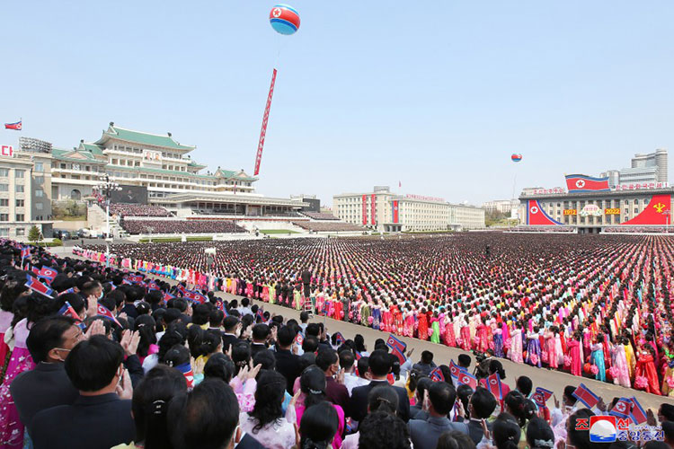中央報告大會(huì )結束后,舉行了平壤市群眾游行。