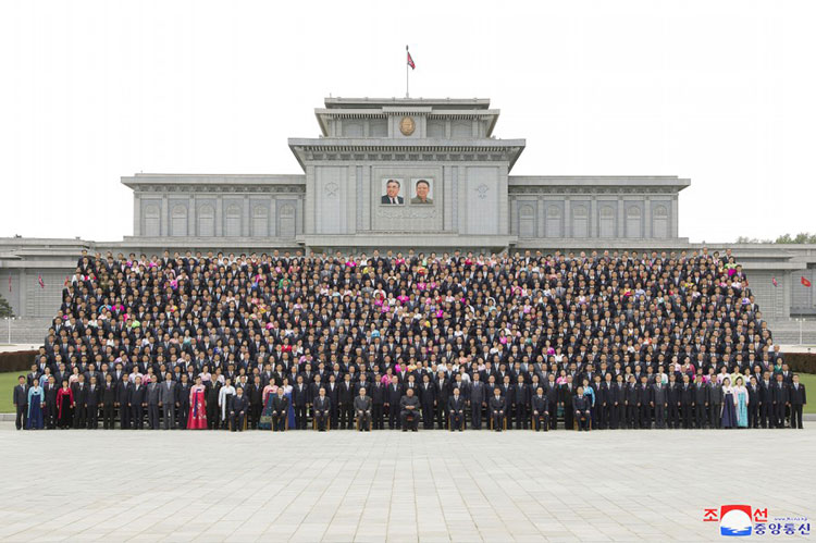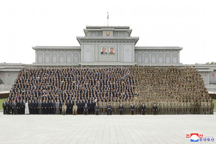 慶?;顒?dòng)參加者同高尊嚴的我們黨、我們國家、我國武裝力量的強大和戰無(wú)不勝之象征——敬愛(ài)的金正恩同志一起,很榮幸地觀(guān)看總結充滿(mǎn)偉大勝利和光榮的白頭山革命強軍90年歷史的莊嚴閱兵式后,又照合影做個(gè)世代相傳的紀念,為此感到無(wú)限激情和歡喜。