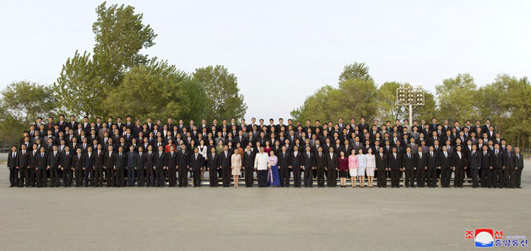 朝中社平壤4月29日電 朝鮮勞動(dòng)黨總書(shū)記、朝鮮民主主義人民共和國國務(wù)委員長(cháng)金正恩同志4月27日同在最高水平上保障慶祝朝鮮人民革命軍建軍90周年閱兵式電視廣播的朝鮮中央廣播電視委員會(huì )播音員、記者、攝影師、編輯人員等工作人員合影留念。