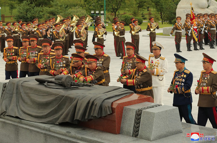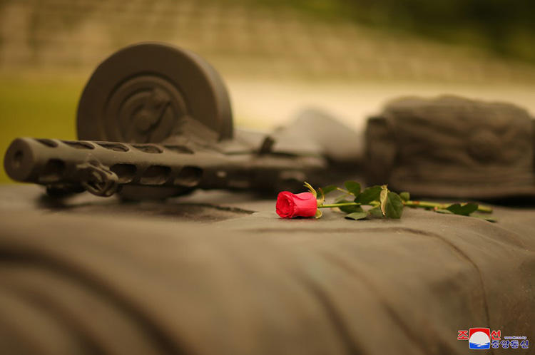 偉大年代的烈士們以浴血的勝利、可貴的犧牲光榮捍衛祖國和人民的主權和安寧,并把高貴的思想精神遺產(chǎn)和勝利傳統鞏固成為我們共和國永恒不變的強大基石。金正恩同志向他們表示了崇高敬意。