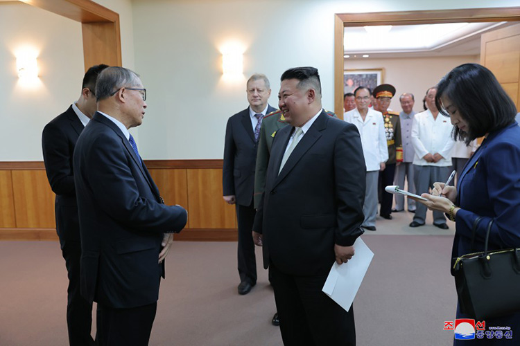 率領(lǐng)中華人民共和國黨政代表團訪(fǎng)問(wèn)平壤的中國共產(chǎn)黨中央委員會(huì )政治局委員、全國人民代表大會(huì )常務(wù)委員會(huì )副委員長(cháng)李鴻忠向
