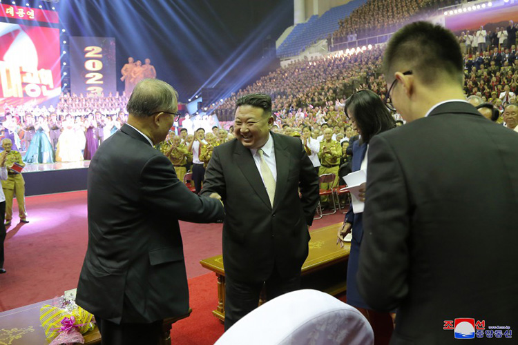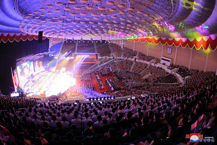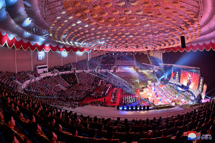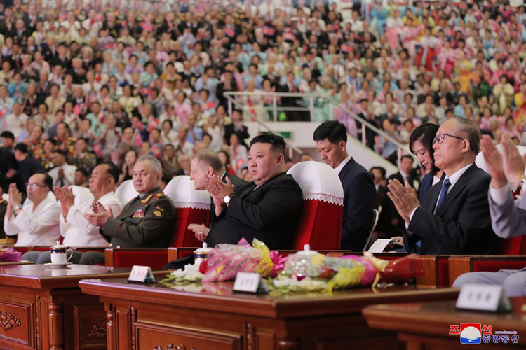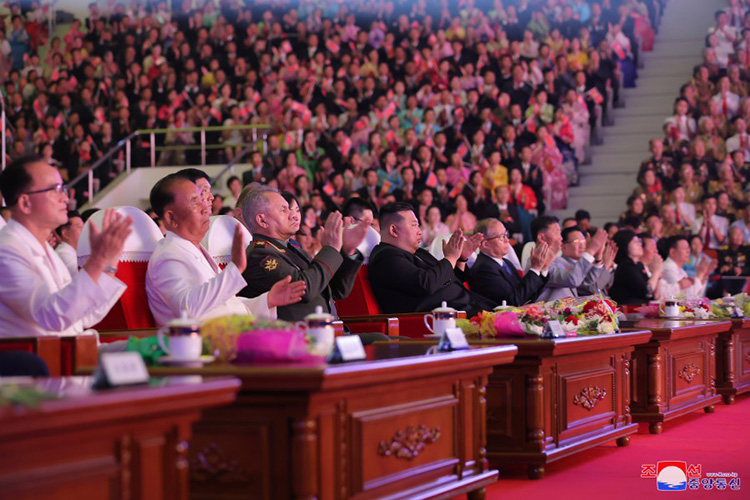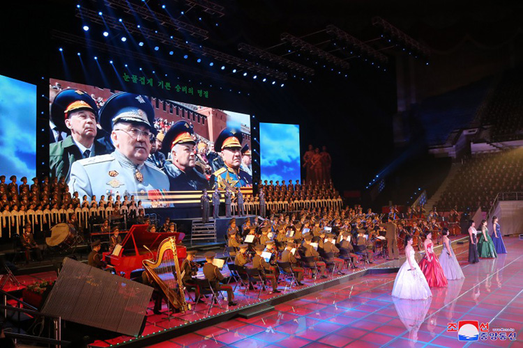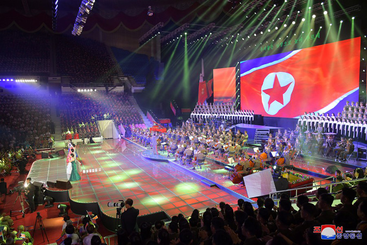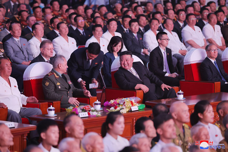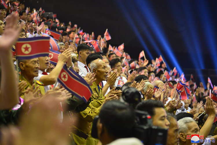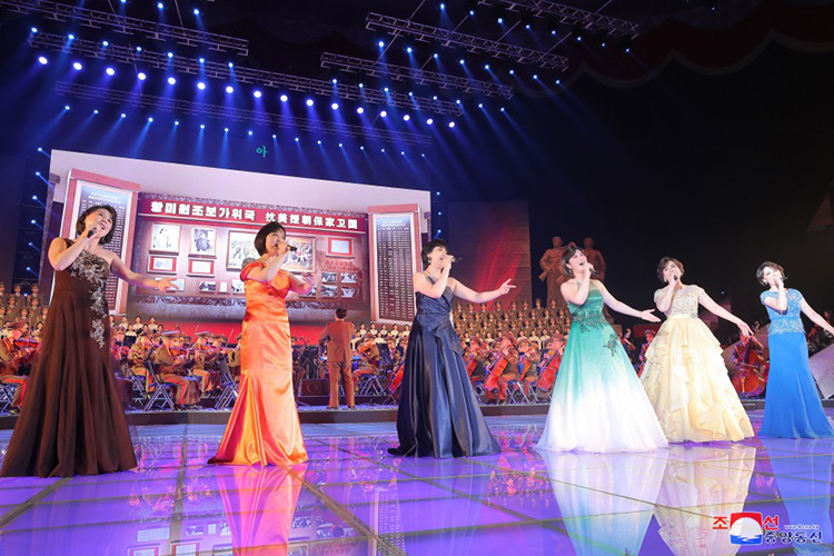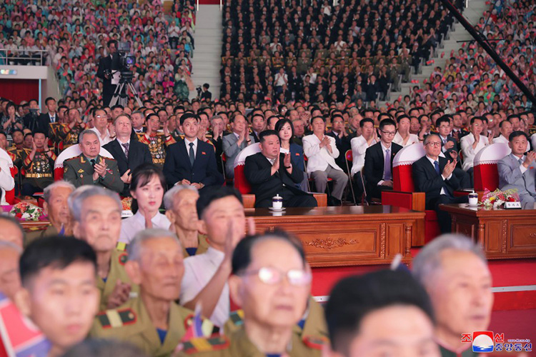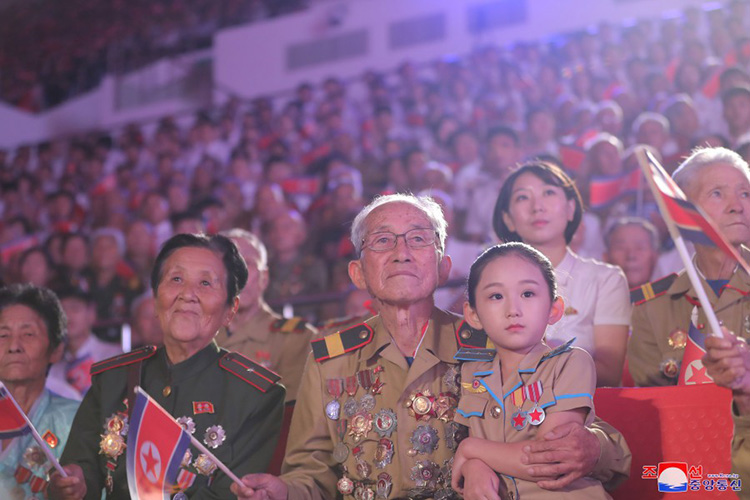 朝鮮勞動(dòng)黨中央委員會(huì )政治局常務(wù)委員會(huì )委員和黨、政府、軍隊的領(lǐng)導干部與參戰老兵、戰時(shí)立功者等慶?;顒?dòng)參加者一起觀(guān)看了演出。