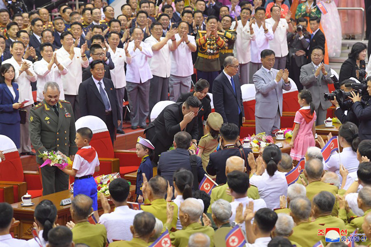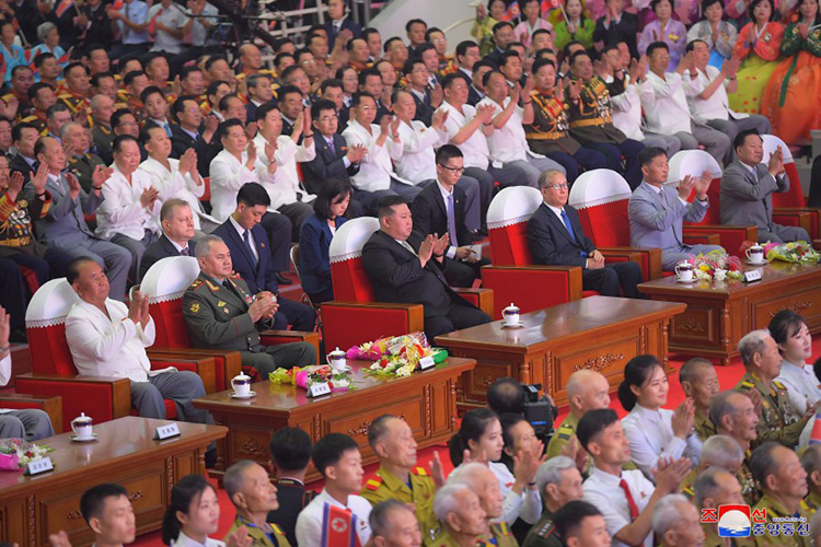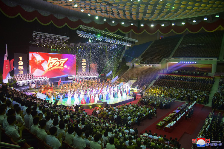 7·27是東方一角的第一個(gè)人民之國、新生共和國站在史稱(chēng)“戰爭之世紀”的20世紀中間,擊退帝國主義的魁首——美帝國主義強盜式武裝進(jìn)攻的歷史之日。從那時(shí)起直到今天的長(cháng)達2萬(wàn)5568天的漫長(cháng)歲月,是堅守戰勝的3年和其勝利的不屈的70年。場(chǎng)內充滿(mǎn)著(zhù)其帶給的寶貴名譽(yù)和尊嚴,有意義地迎接我們國家和全體人民的節日——戰勝節的無(wú)比自豪感。