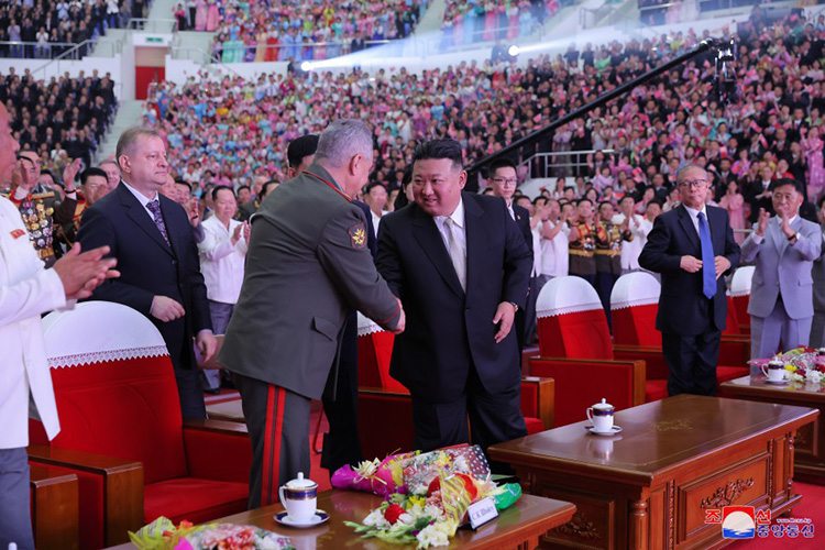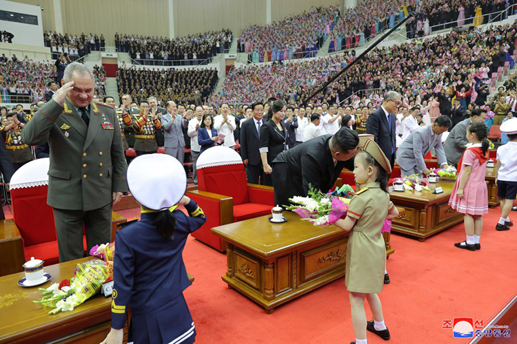 當為到訪(fǎng)的友好使者特意準備的中國組歌和俄羅斯組歌唱響時(shí),場(chǎng)內澎湃著(zhù)在實(shí)現反帝自主的共同斗爭中締造并鞏固的友好團結的歷史和傳統將與世紀同行堅定地繼承和發(fā)展下去的確信和友愛(ài)熱潮。