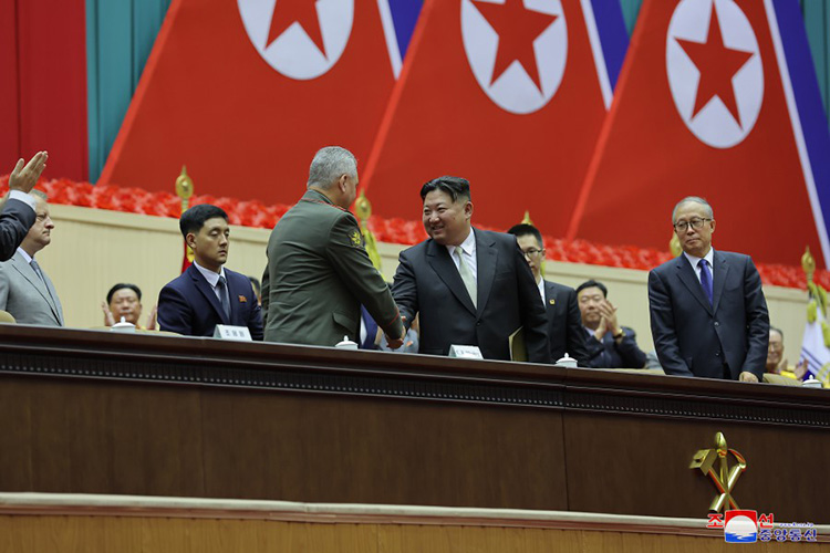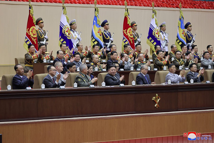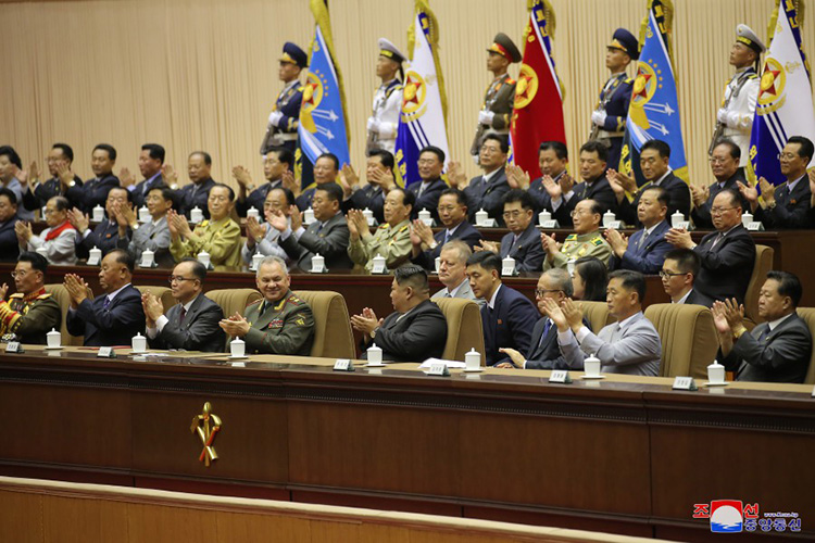 全體參加者以熱烈的歡呼聲對在我國人民光榮的勝利節日之際謹向敬愛(ài)的金正恩同志和大會(huì )參加者致以誠摯祝賀的普京總統的賀詞表達了感謝之情。