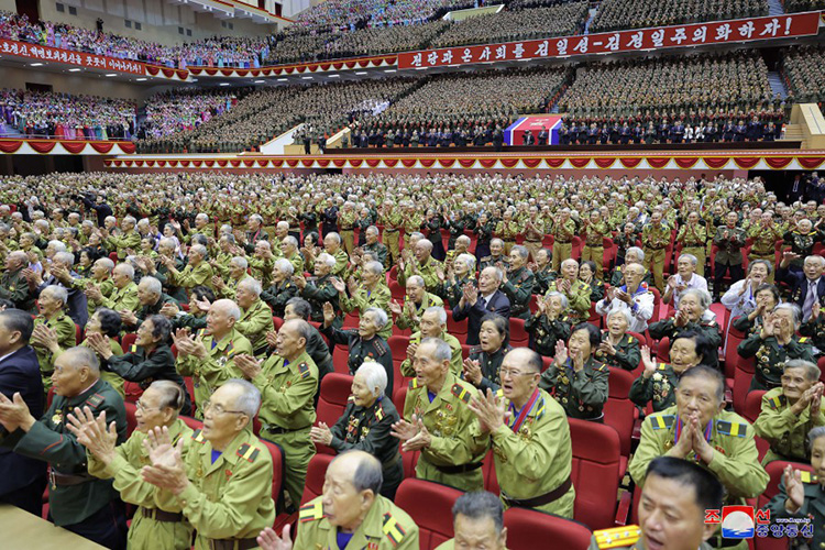 偉大的英雄時(shí)代主人公——參戰老兵、戰時(shí)立功者、擁軍美好風(fēng)尚積極分子、立功者、勞模、烈士子孫、青年建設者、朝鮮人民軍官兵和革命學(xué)院學(xué)員參加了報告大會(huì )。