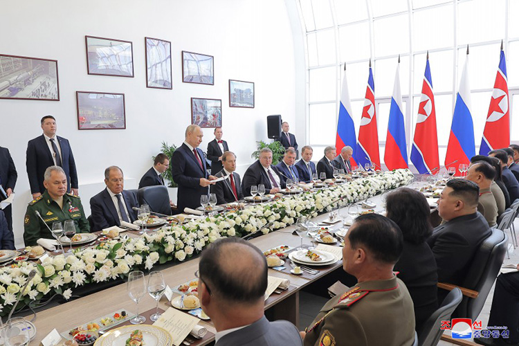 俄羅斯外交部長(cháng)謝爾蓋·拉夫羅夫、政府副總理兼工業(yè)和貿易部部長(cháng)丹尼斯·曼圖羅夫、國防部長(cháng)謝爾蓋·紹伊古、政府副總理阿列克謝·奧韋爾丘克、政府副總理兼總統駐遠東聯(lián)邦區全權代表尤里·特魯特涅夫、政府副總理馬拉特·胡斯努林、總統辦公廳副主任兼新聞秘書(shū)德米特里·佩斯科夫、自然資源與生態(tài)部長(cháng)兼朝俄政府間貿易經(jīng)濟和科技合作委員會(huì )俄方委員長(cháng)亞歷山大·科茲洛夫、交通部長(cháng)維塔利·薩韋利耶夫等俄羅斯領(lǐng)導干部和有關(guān)干部以及俄羅斯駐朝特命全權大使亞歷山大·馬采戈拉參加招待會(huì )。