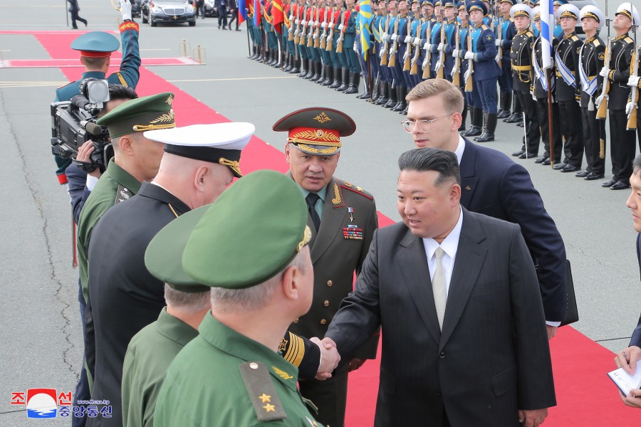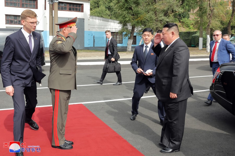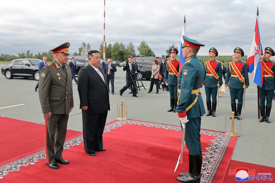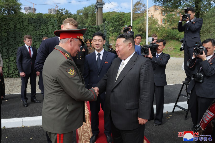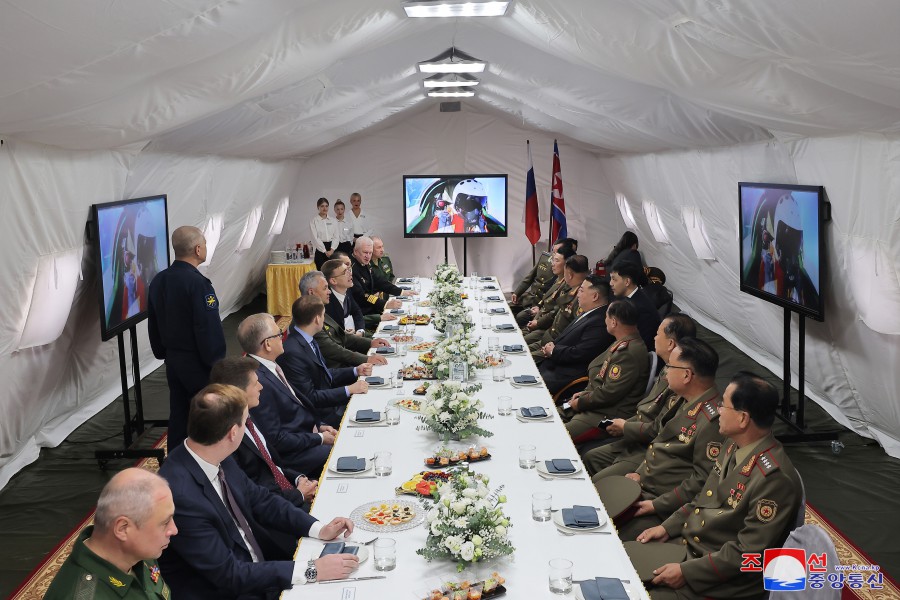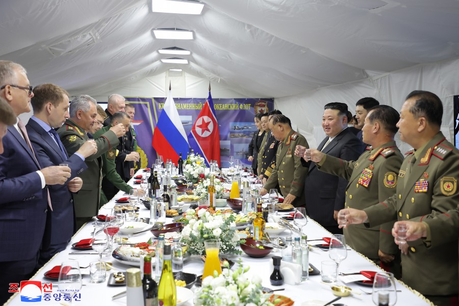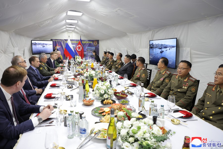 俄羅斯聯(lián)邦國防部長(cháng)謝爾蓋?紹伊古舉辦午宴,歡迎敬愛(ài)的金正恩同志訪(fǎng)問(wèn)太平洋艦隊。