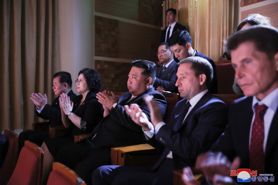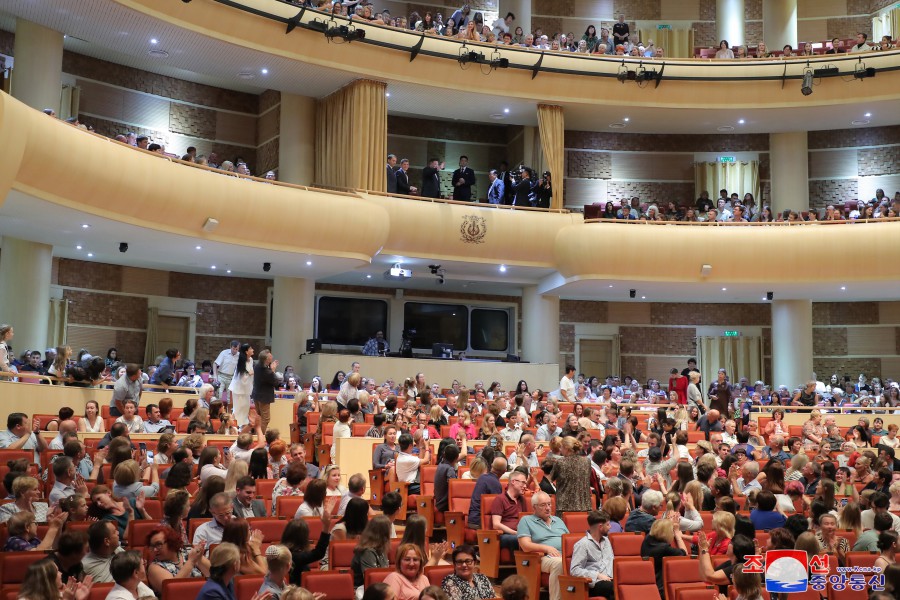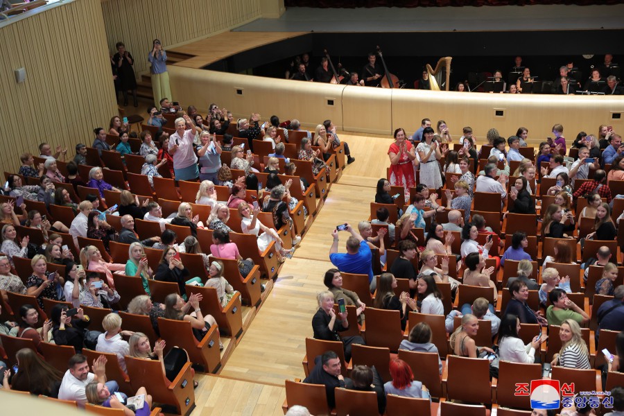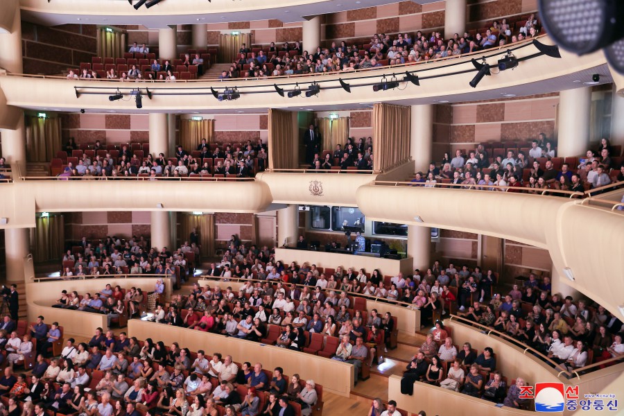 朝鮮民主主義人民共和國外務(wù)相崔善姬、朝鮮勞動(dòng)黨中央委員會(huì )書(shū)記吳秀容和樸泰成等隨行干部和人員觀(guān)看演出。