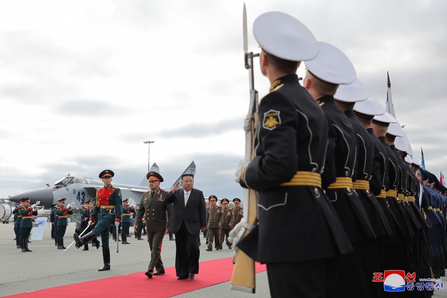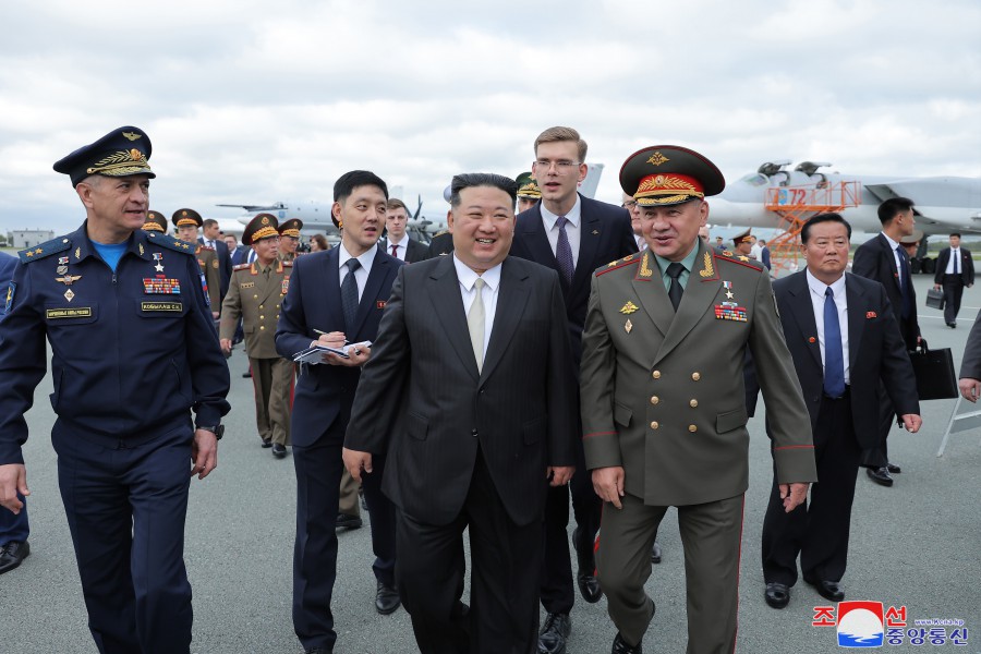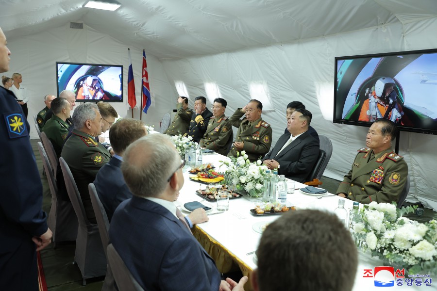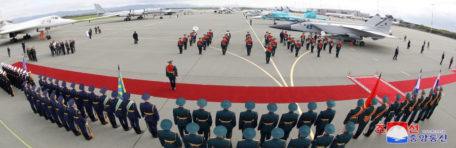 朝鮮人民軍元帥李炳哲和樸正天、朝鮮民主主義人民共和國國防相強純男、朝鮮人民軍空軍司令官金光赫空軍大將和海軍司令官金明食海軍大將等隨行干部和人員以及俄羅斯聯(lián)邦中央和地方的官員陪同參觀(guān)。