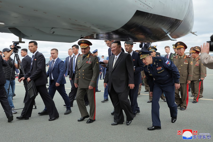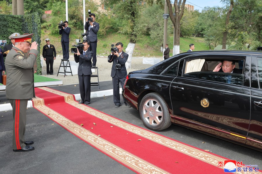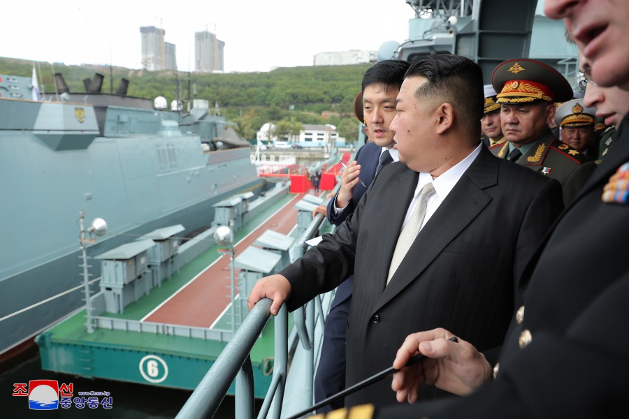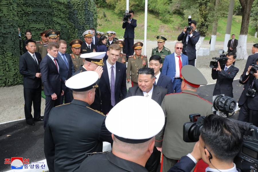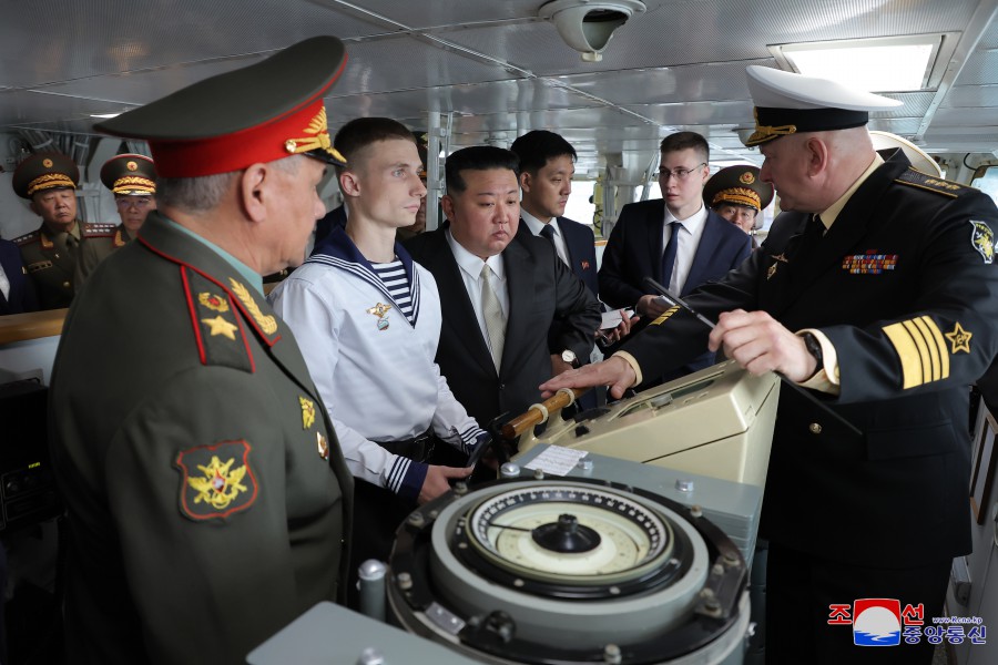 國防部長(cháng)謝爾蓋?紹伊古、海軍總司令尼古拉?葉夫梅諾夫、太平洋艦隊司令維克托·利亞納和艦隊指揮官到場(chǎng)迎接了敬愛(ài)的金正恩同志。