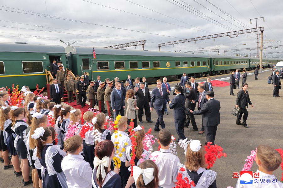 當地時(shí)間9時(shí),敬愛(ài)的金正恩同志乘坐的專(zhuān)列駛入了阿爾喬姆-濱海邊疆一火車(chē)站區內。