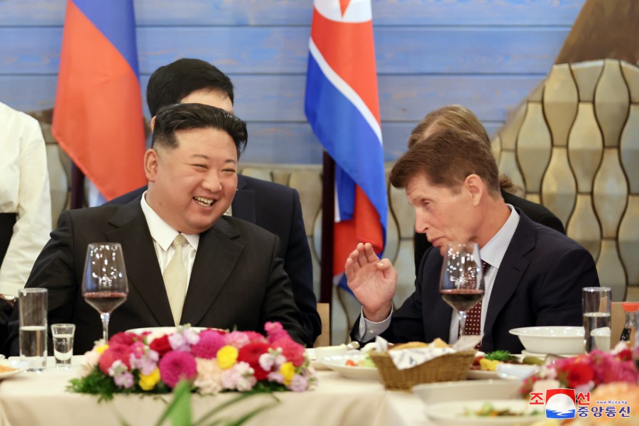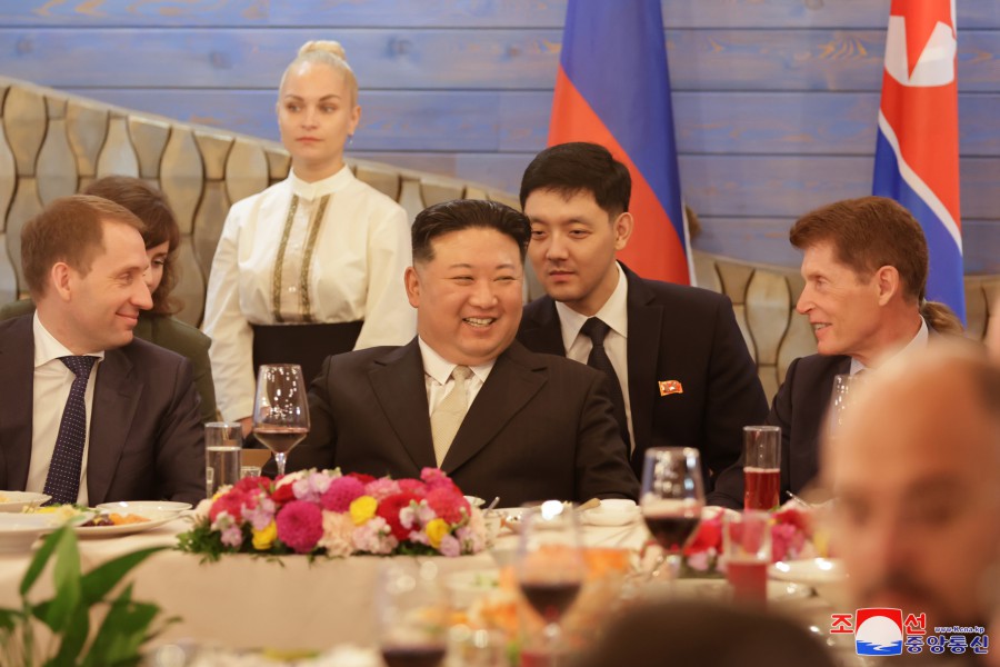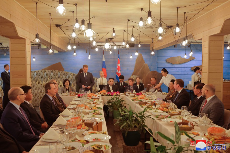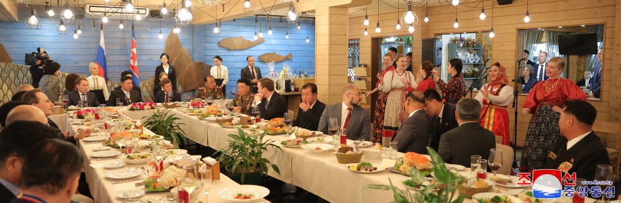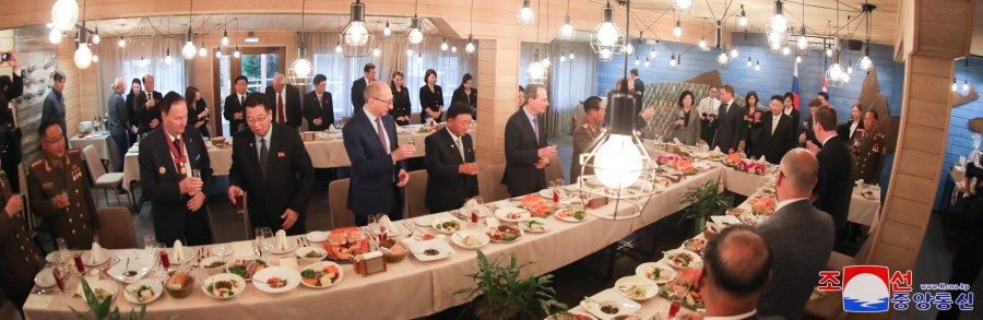 俄羅斯自然資源與生態(tài)部部長(cháng)亞歷山大·科茲洛夫、濱海邊疆區行政長(cháng)官奧列格·科熱米亞科舉辦宴會(huì ),歡迎敬愛(ài)的金正恩同志訪(fǎng)問(wèn)符拉迪沃斯托克市。