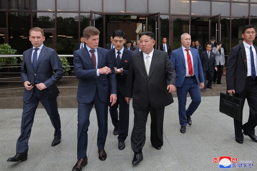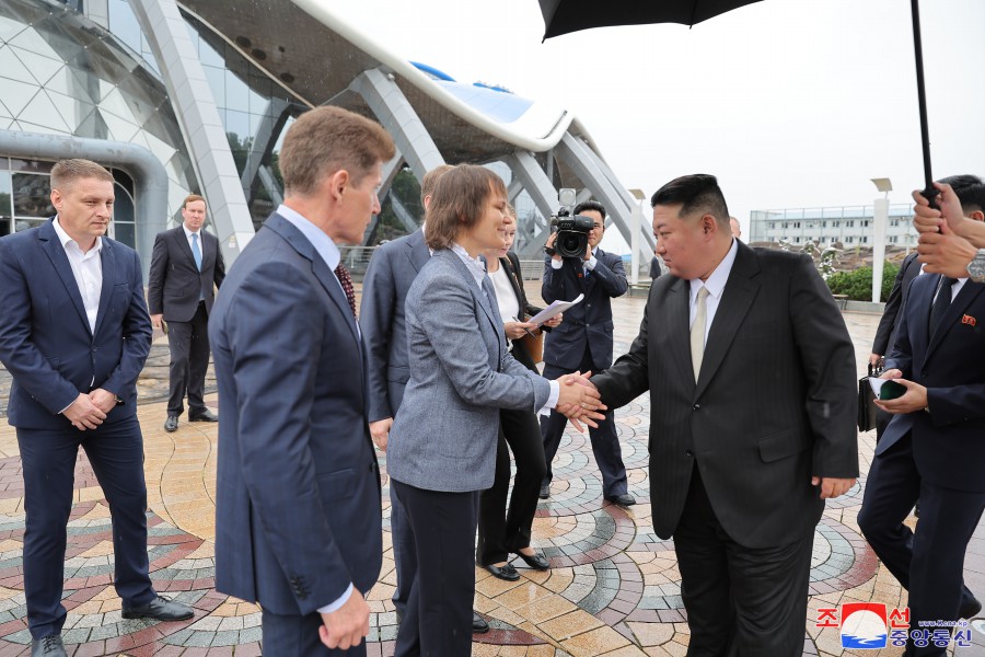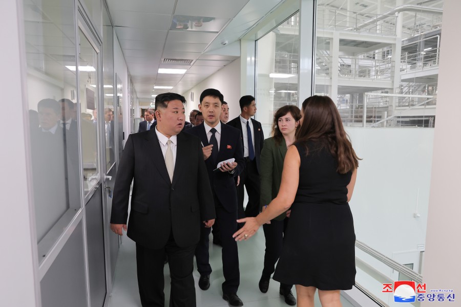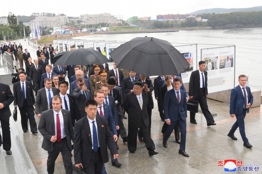 朝中社平壤9月18日電 朝鮮勞動(dòng)黨總書(shū)記、朝鮮民主主義人民共和國國務(wù)委員長(cháng)金正恩同志9月17日參觀(guān)遠東聯(lián)邦大學(xué)、濱海海洋水族館和山金車(chē)生物飼料合成工廠(chǎng)。