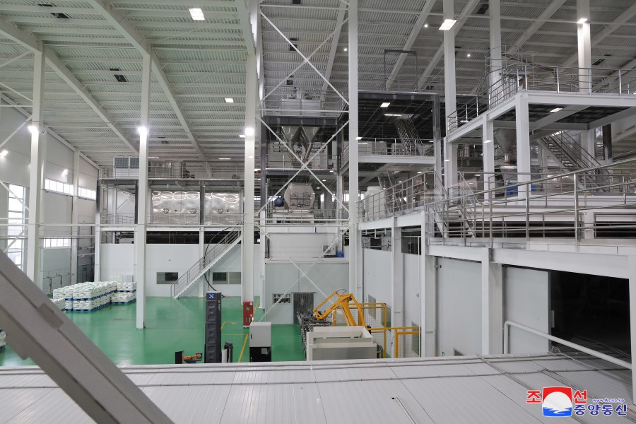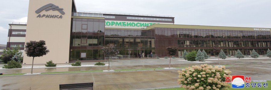 當天下午,敬愛(ài)的金正恩同志參觀(guān)了山金車(chē)生物飼料合成工廠(chǎng)。