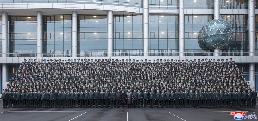 朝中社平壤11月24日電 朝鮮勞動(dòng)黨總書(shū)記、朝鮮民主主義人民共和國國務(wù)委員長(cháng)金正恩同志11月23日同成功發(fā)射偵察衛星,為共和國武裝力量的備戰和自衛力量強化做出巨大貢獻的國家航空航天技術(shù)總局科技工作者和工作人員合影留念。
