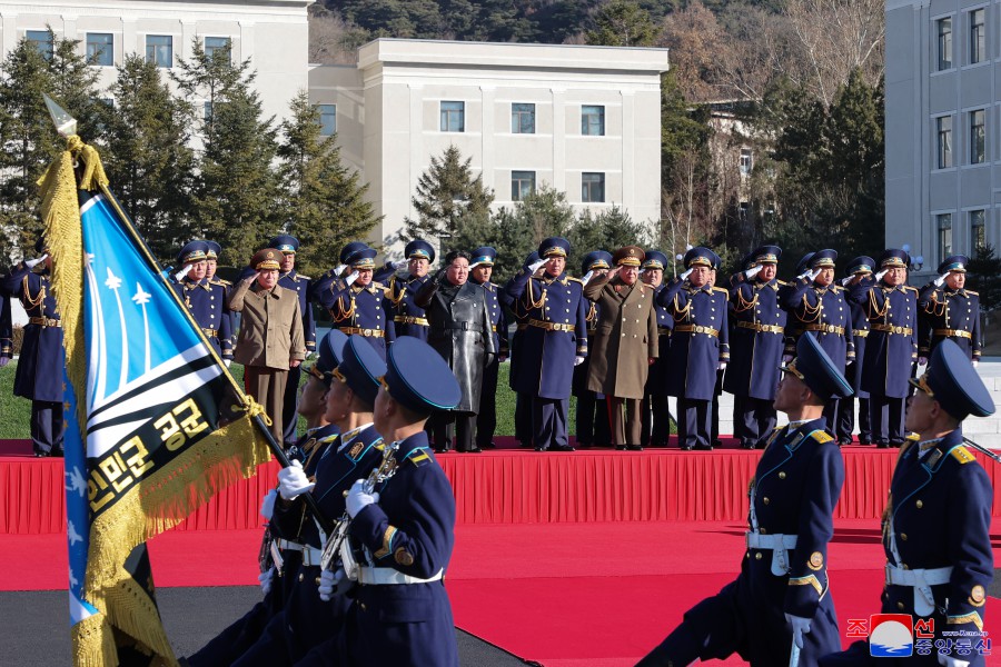 敬愛(ài)的金正恩同志抵達空軍司令部時(shí),全體空軍官兵充滿(mǎn)著(zhù)與有意義的航空武力成立日一道受到將在主體人民空軍強化發(fā)展史上彪炳千古的無(wú)上光榮和特別恩典的莫大感激和激情,迸發(fā)出了熱烈的“萬(wàn)歲!”歡呼聲。