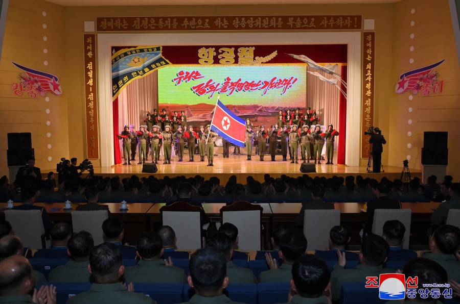 全體參加者向與空軍官兵們一起歡度航空節,開(kāi)創(chuàng )空軍發(fā)展輝煌新轉機的敬愛(ài)的金正恩同志表示感謝,并發(fā)誓在切實(shí)貫徹落實(shí)黨中央所指引的新時(shí)代空軍建設思想和路線(xiàn)的斗爭道路上大力顯示偉大的金正恩空軍的戰斗氣概。