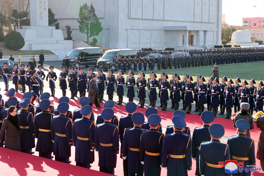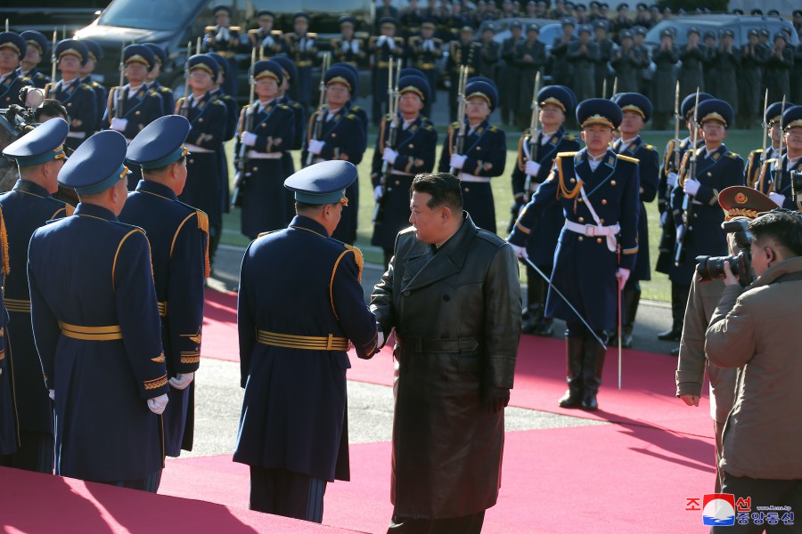 迎接朝鮮民主主義人民共和國武裝力量最高司令官同志的儀式在場(chǎng)舉行。
