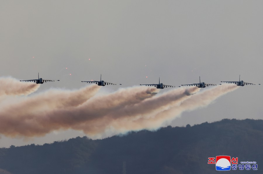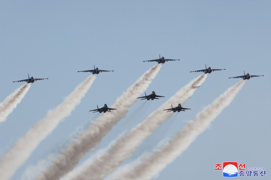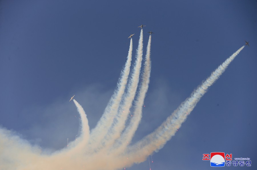 朝鮮人民軍空軍儀仗隊舉行了列隊行進(jìn)。