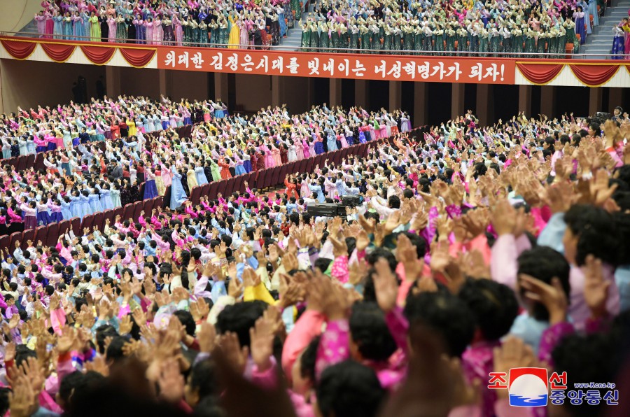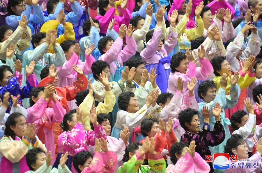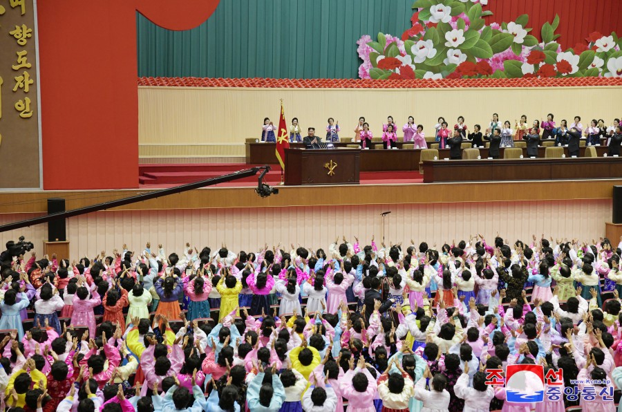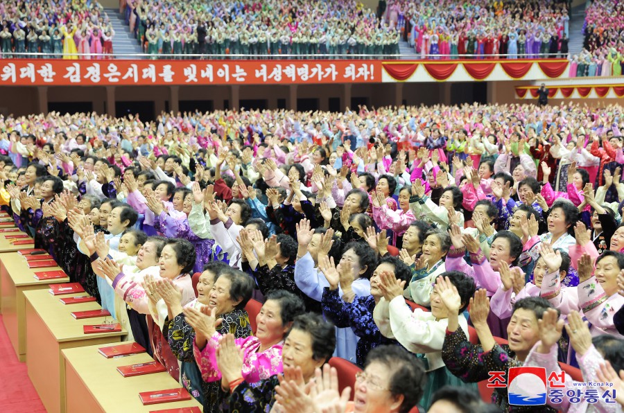 這次大會(huì )是我們給愛(ài)國忠誠的朝鮮的母親們戴上黨和國家在新時(shí)代進(jìn)軍路上所取得的所有勝利的桂冠,并向她們表示無(wú)限的敬意和祝賀的慶功大會(huì );是再一次顯示神圣地對待代表祖國未來(lái)的后代和母親,并把他們推上首位的我們事業(yè)的正確性和輝煌前途的一次政治慶典。