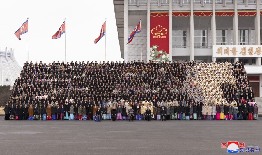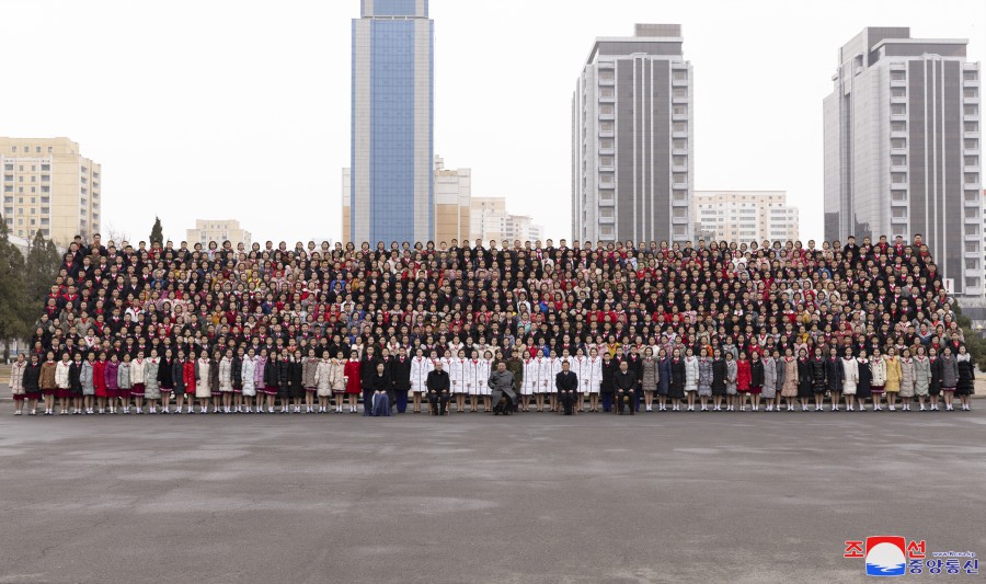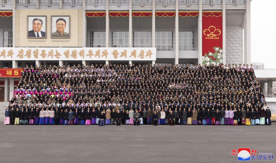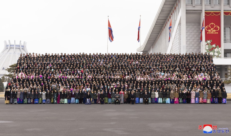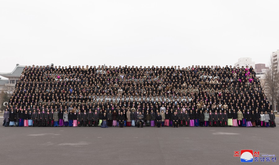 朝中社平壤12月9日電 朝鮮勞動(dòng)黨總書(shū)記、朝鮮民主主義人民共和國國務(wù)委員長(cháng)金正恩同志12月8日同第五次全國母親大會(huì )與會(huì )者合影留念。