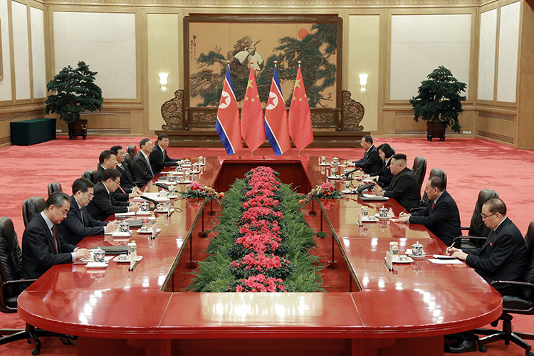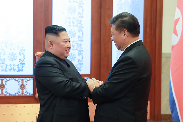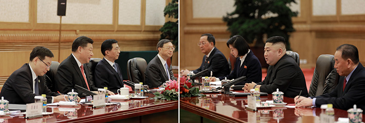 敬愛(ài)的金正恩同志和習近平同志會(huì )晤,在同志友好的氣氛中舉行會(huì )談。