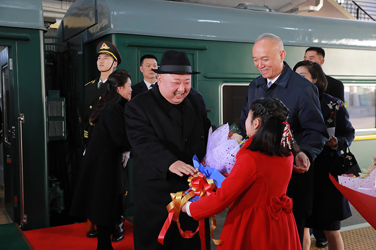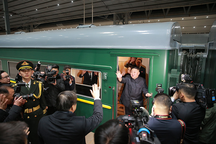 敬愛(ài)的金正恩同志圓滿(mǎn)結束對中華人民共和國的訪(fǎng)問(wèn),從丹東火車(chē)站出發(fā)。