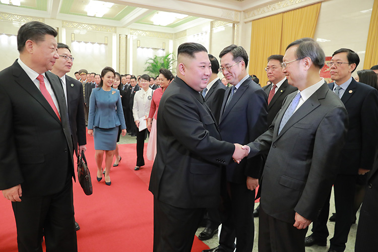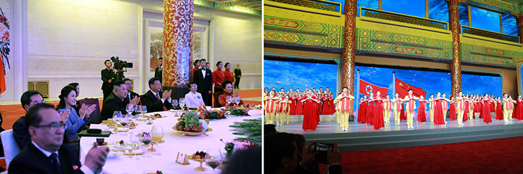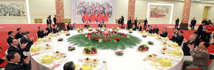 習近平同志在人民大會(huì )堂舉行盛宴歡迎敬愛(ài)的金正恩同志訪(fǎng)問(wèn)中國。