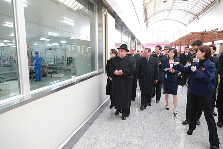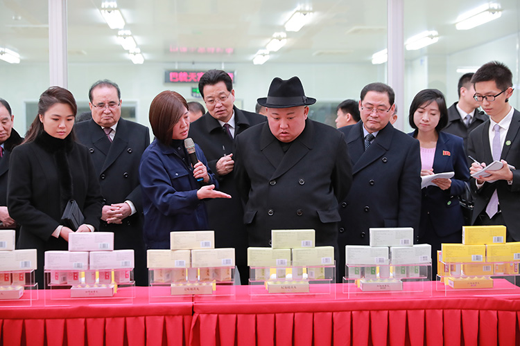 敬愛(ài)的金正恩同志參觀(guān)北京同仁堂股份有限公司制藥分廠(chǎng)。