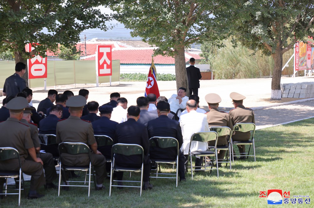 金正恩同志察看工地后,與陪同的領(lǐng)導干部進(jìn)行了談話(huà)。