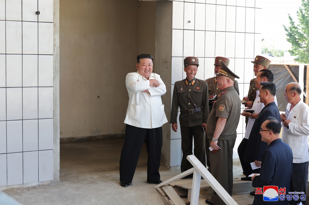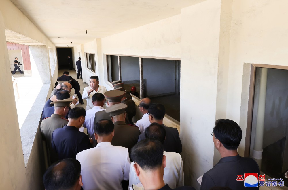 金正恩同志察看工地時(shí),對施工質(zhì)量在很高水平上得到保證表示滿(mǎn)意。