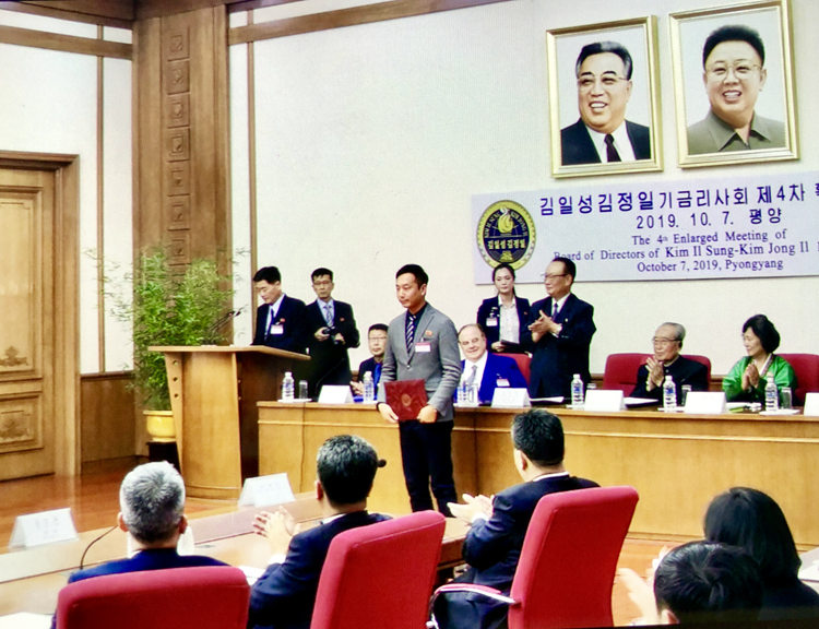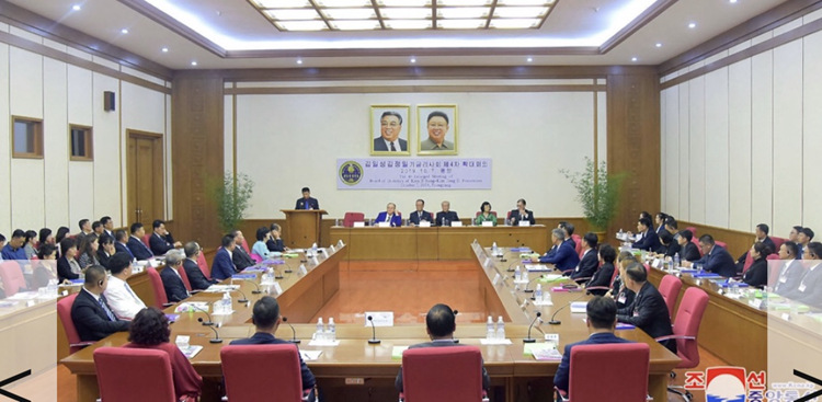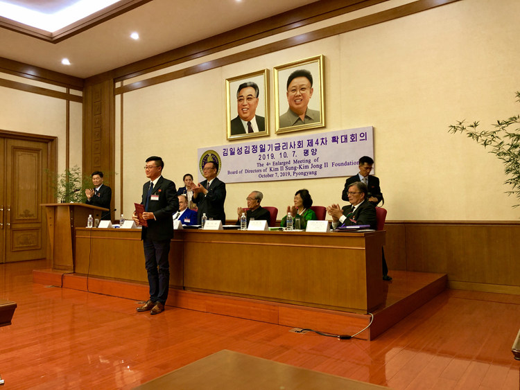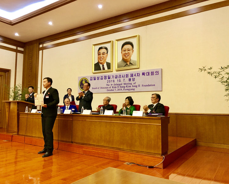 金日成金正日基金會(huì )第四次理事擴大會(huì )議在平壤人民文化宮舉行!基金會(huì )委員長(cháng)金基男同志出席,并向新任理事頒發(fā)任命證書(shū),金蒼德理事長(cháng)向新任會(huì )員頒發(fā)證書(shū),會(huì )議取得了圓滿(mǎn)成功!