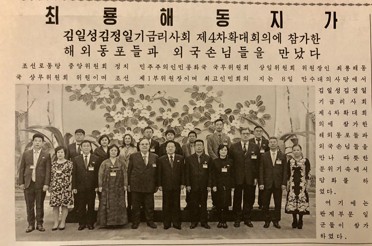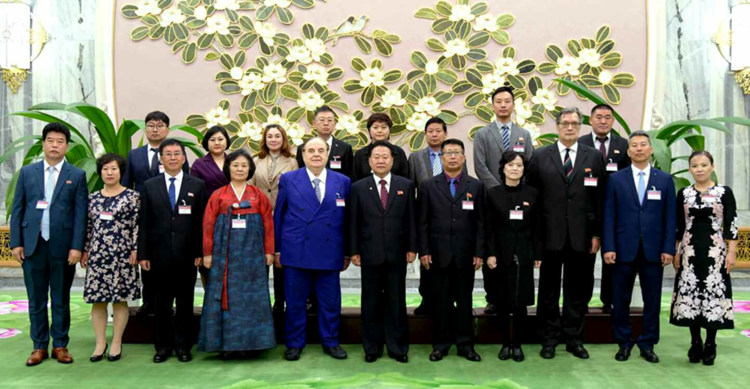 參加金日成金正日基金會(huì )第四次理事擴大會(huì )議的海外同胞及外國人,禮節性拜訪(fǎng)朝鮮最高人民會(huì )議常任委員會(huì )委員長(cháng)崔龍海同志!會(huì )面地點(diǎn)在平壤萬(wàn)壽臺議事堂!