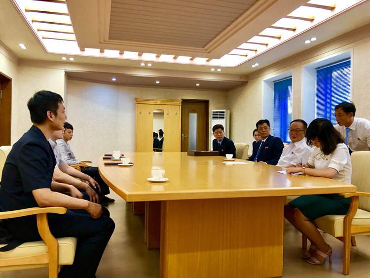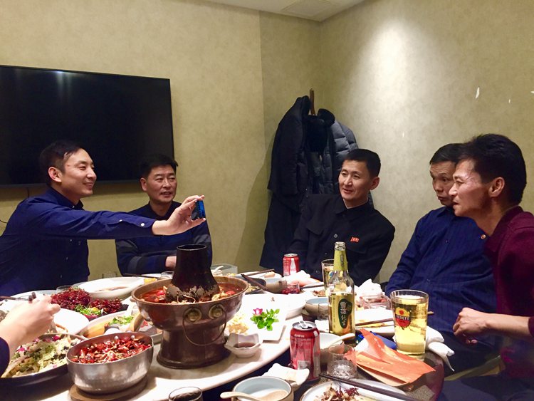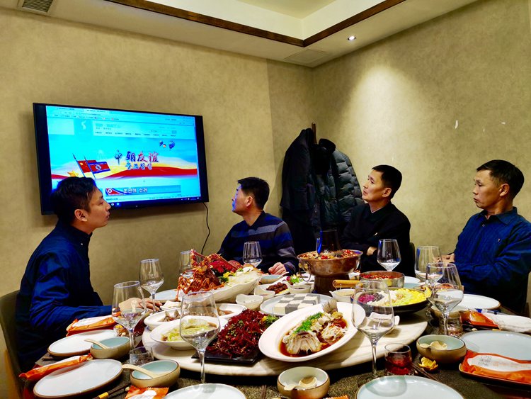 12月里,在沈陽(yáng)接待以朝鮮金日成金正日基金會(huì )海外局趙局長(cháng)為團長(cháng)的來(lái)華代表團一行!今年7月,我作為基金會(huì )會(huì )員,在朝鮮平壤基金會(huì )本部,與金蒼德理事長(cháng)以及基金會(huì )海外局趙局長(cháng)一起討論基金會(huì )工作!這次趙局長(cháng)帶團來(lái)華,晚餐前,向趙局長(cháng)及基金會(huì )其他來(lái)華人員,介紹我作為基金會(huì )會(huì )員,通過(guò)我們沈陽(yáng)互聯(lián)網(wǎng)公司制作的宣傳中朝友誼網(wǎng)站《朝鮮·錦繡江山》,網(wǎng)站上發(fā)布了基金會(huì )10月份召開(kāi)的第四次理事擴大會(huì )議的相關(guān)情況!趙局長(cháng)及其他基金會(huì )人員,看了之后,感到驚訝,沒(méi)想到在朝鮮之外,還有這樣好的網(wǎng)站,他們要向基金會(huì )領(lǐng)導以及相關(guān)部門(mén)匯報這個(gè)事情,介紹網(wǎng)站用時(shí)1個(gè)多小時(shí),大家心情激動(dòng)!之后,我們在場(chǎng)的沈陽(yáng)地區中方人員,都是通過(guò)我去過(guò)朝鮮,進(jìn)行商務(wù)考察,并且都到過(guò)基金會(huì )本部我的朋友們,大家舉起了酒杯,在中朝建交70周年的歲月里,互相致意,把酒言歡,氣氛熱烈!
