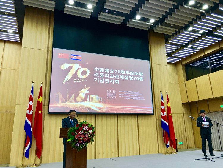 池在龍在致辭中說(shuō),朝中友誼凝聚著(zhù)兩國老一輩領(lǐng)導人的心血,扎根于兩國人民心中。朝方將與中國同志們一道,緊密攜手,共同書(shū)寫(xiě)朝中友誼美好新篇章。相信本次圖片展將成為擴大和發(fā)展朝中傳統友誼和進(jìn)一步深化兩國人民友好關(guān)系的契機。2019年12月18日至12月24日,“中國—朝鮮建交70周年紀念展”在國家圖書(shū)館典籍博物館第七展廳舉辦。