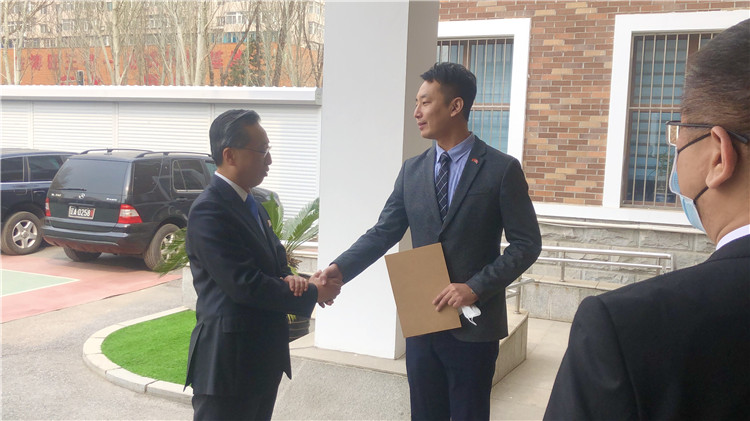 2020年4月15日,是朝鮮人民的偉大領(lǐng)袖金日成主席誕辰108周年紀念日!今天一早,沈陽(yáng)山和大海進(jìn)出口貿易有限公司總經(jīng)理趙斌及其朋友們,來(lái)到朝鮮駐沈陽(yáng)總領(lǐng)事館,向金日成主席肖像獻花鞠躬表達敬意!趙斌總經(jīng)理委托金副總領(lǐng)事轉交寫(xiě)給金正恩委員長(cháng)的節日信函!