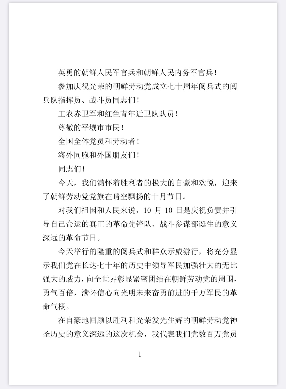 重溫金正恩同志在朝鮮勞動(dòng)黨建黨70周年慶祝大會(huì )上的講話(huà)!