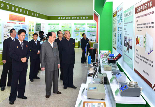 值此金日成綜合大學(xué)建校70周年之際,金永南、金己男和崔泰福10月1日同大學(xué)干部一起參觀(guān)了大學(xué)的教育科學(xué)成果展覽館。