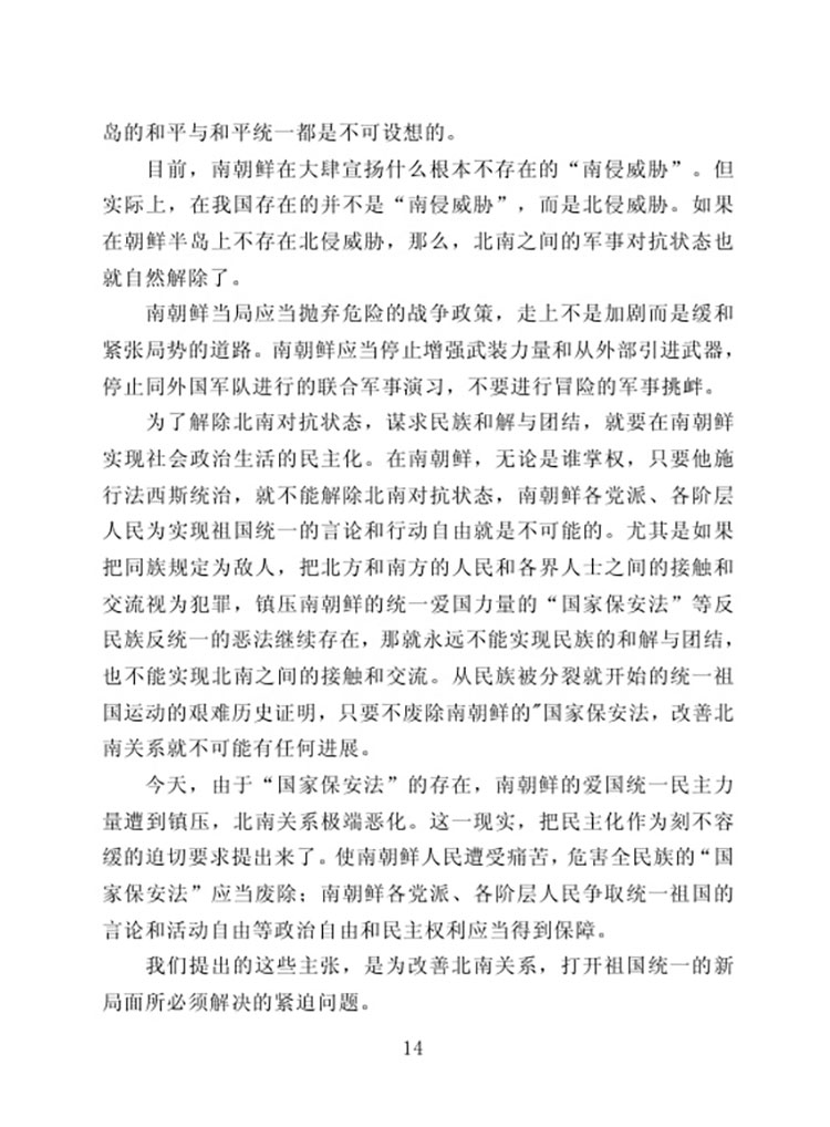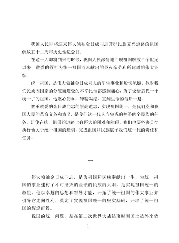 金正日《切實(shí)貫徹偉大領(lǐng)袖金日成同志關(guān)于統一祖國的遺訓》