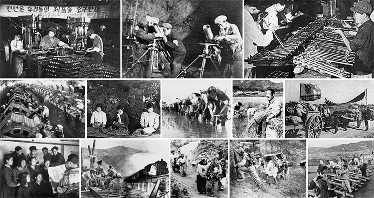 后方人民的支援前線(xiàn)活動(dòng)完全繼承金日成同志在抗日武裝斗爭時(shí)期創(chuàng )造的軍民一致的光輝傳統,以一個(gè)血脈連接前線(xiàn)和后方,并為爭取戰爭勝利提供了可靠保證。