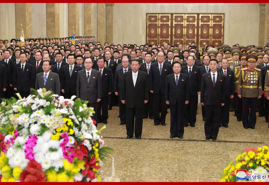 朝鮮勞動(dòng)黨中央委員會(huì )、朝鮮民主主義人民共和國國務(wù)委員會(huì )、朝鮮民主主義人民共和國最高人民會(huì )議常任委員會(huì )、朝鮮民主主義人民共和國內閣名義的花籃分別敬獻在兩位領(lǐng)袖的立像前。