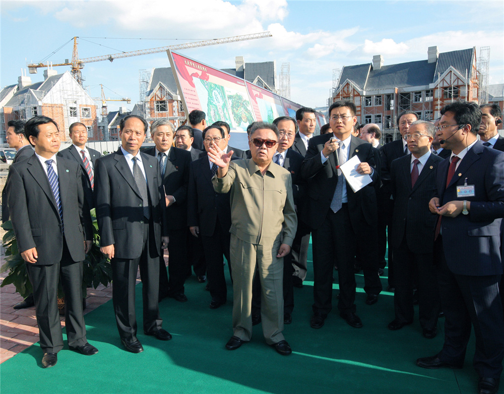 金正日同志2011年8月參觀(guān)在大慶市濕地周邊建設中的住宅建設區。