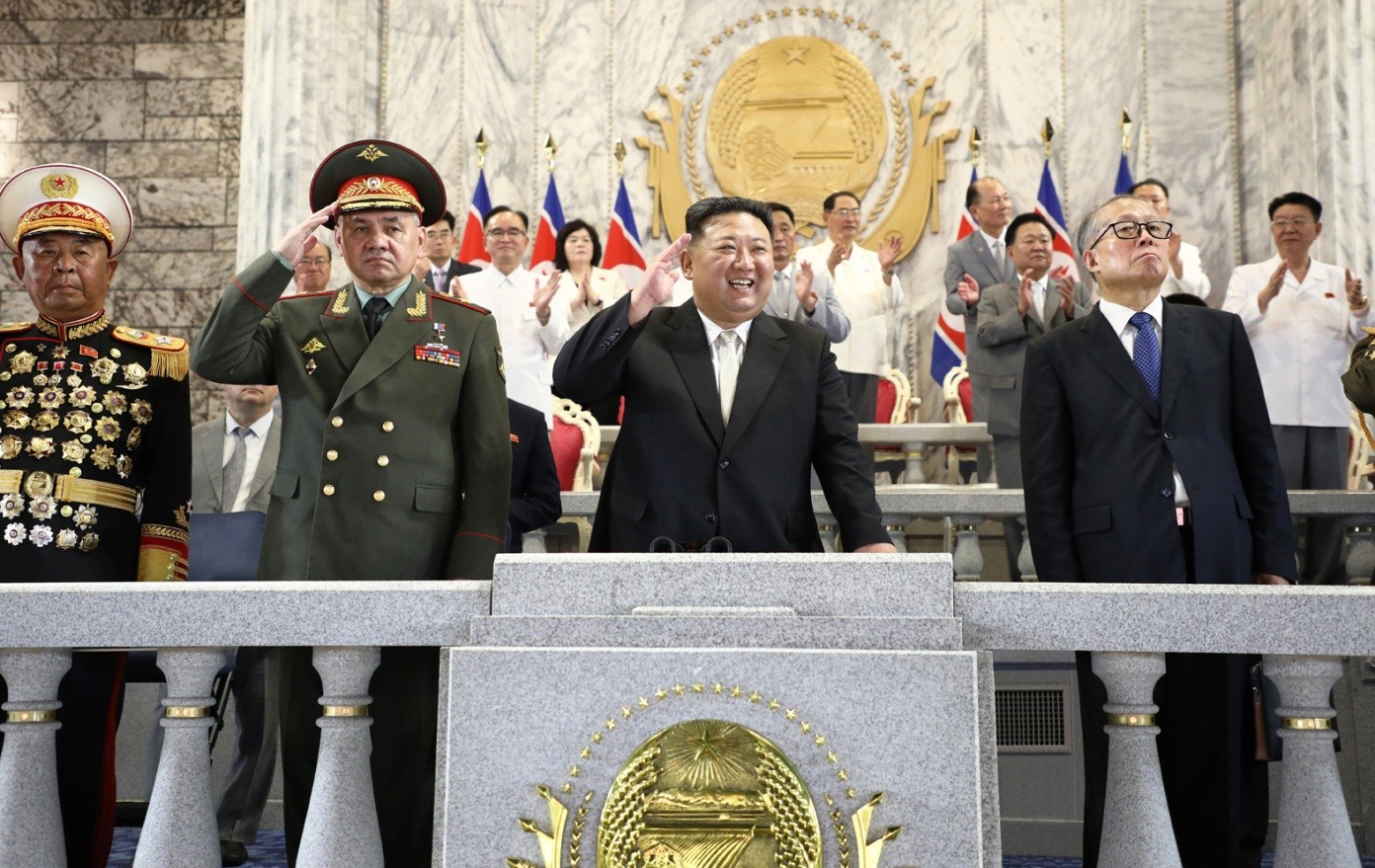金正恩同志出席慶祝偉大祖國解放戰爭勝利70周年閱兵式。(2023年7月)