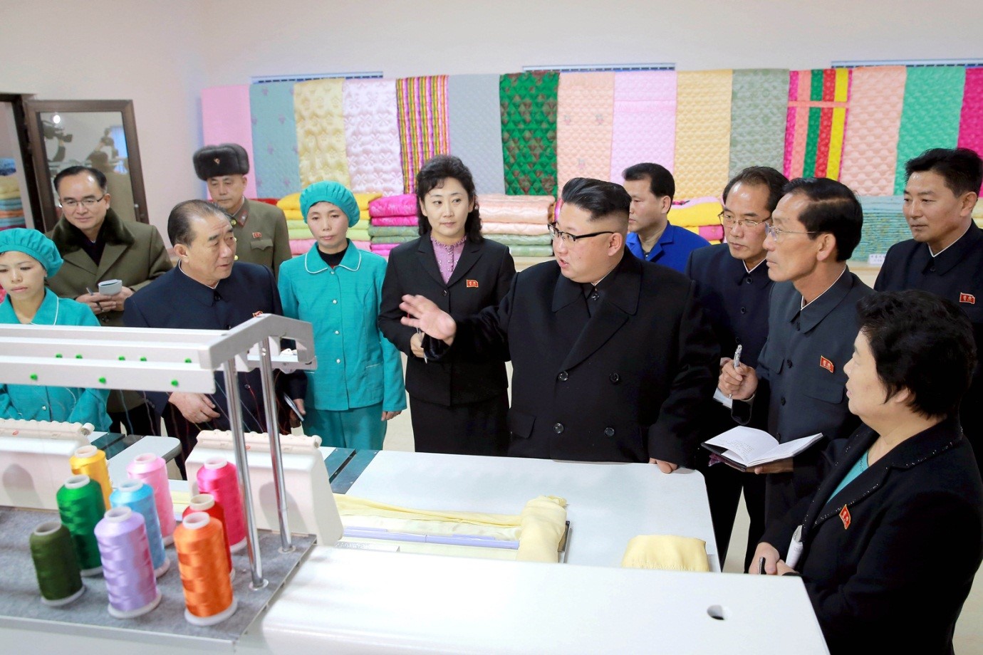 金正恩同志視察平壤金正淑紡織廠(chǎng)。(2016年1月)