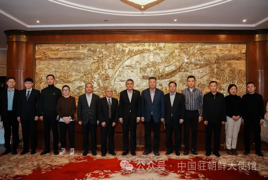 2024年1月15日,王亞軍大使在使館會(huì )見(jiàn)了來(lái)朝訪(fǎng)問(wèn)的朝鮮中國商會(huì )代表團一行。使館馮春臺公使、周長(cháng)亭公參、朱家耀參贊,朝鮮中國商會(huì )會(huì )長(cháng)、代表團團長(cháng)梁彤軍等參加。